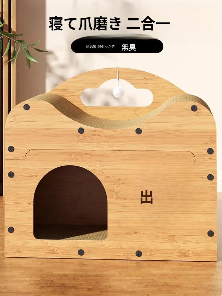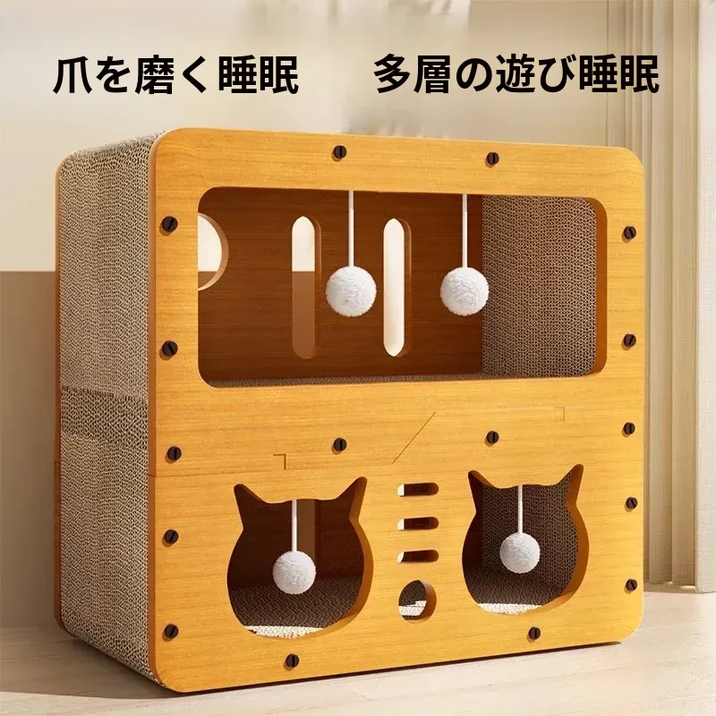 耐久性抜群の猫用グラブボード付きベッド!四季に対応したコルゲート紙製のスタンディングキャットハウス。ソファを守る防抓おもちゃとしても最適です。あなたの猫ちゃんに快適な遊び場を!
