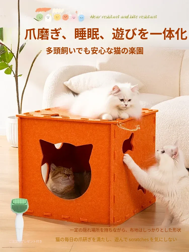 耐久性抜群の猫爪とぎと猫ハウスが一体化!毛が抜けず、猫が夢中になるおもちゃで、ストレス解消にも最適。立てて使える猫の隠れ家で、遊びながらリラックス!