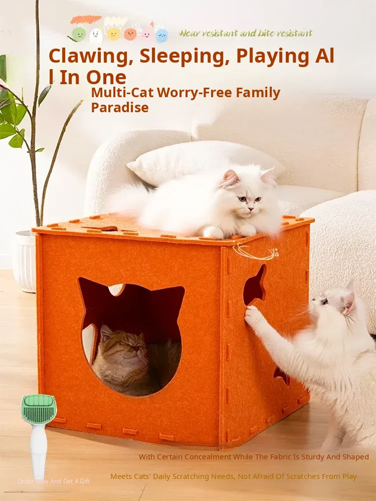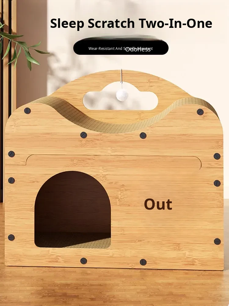 Durable Cat Scratching Post and Cozy Bed – Scratch-Resistant, No Shedding, All-Season Corrugated Cardboard Cat House and Sofa Protector Toy