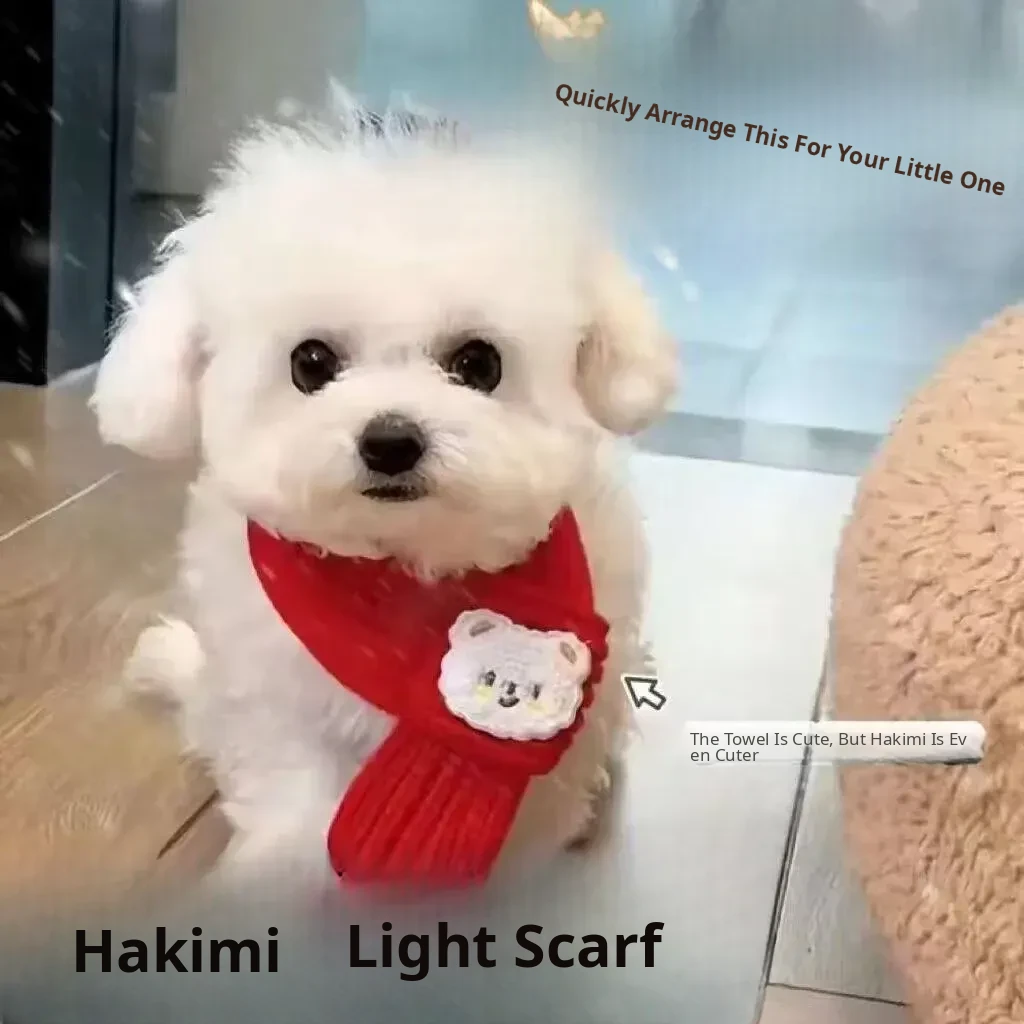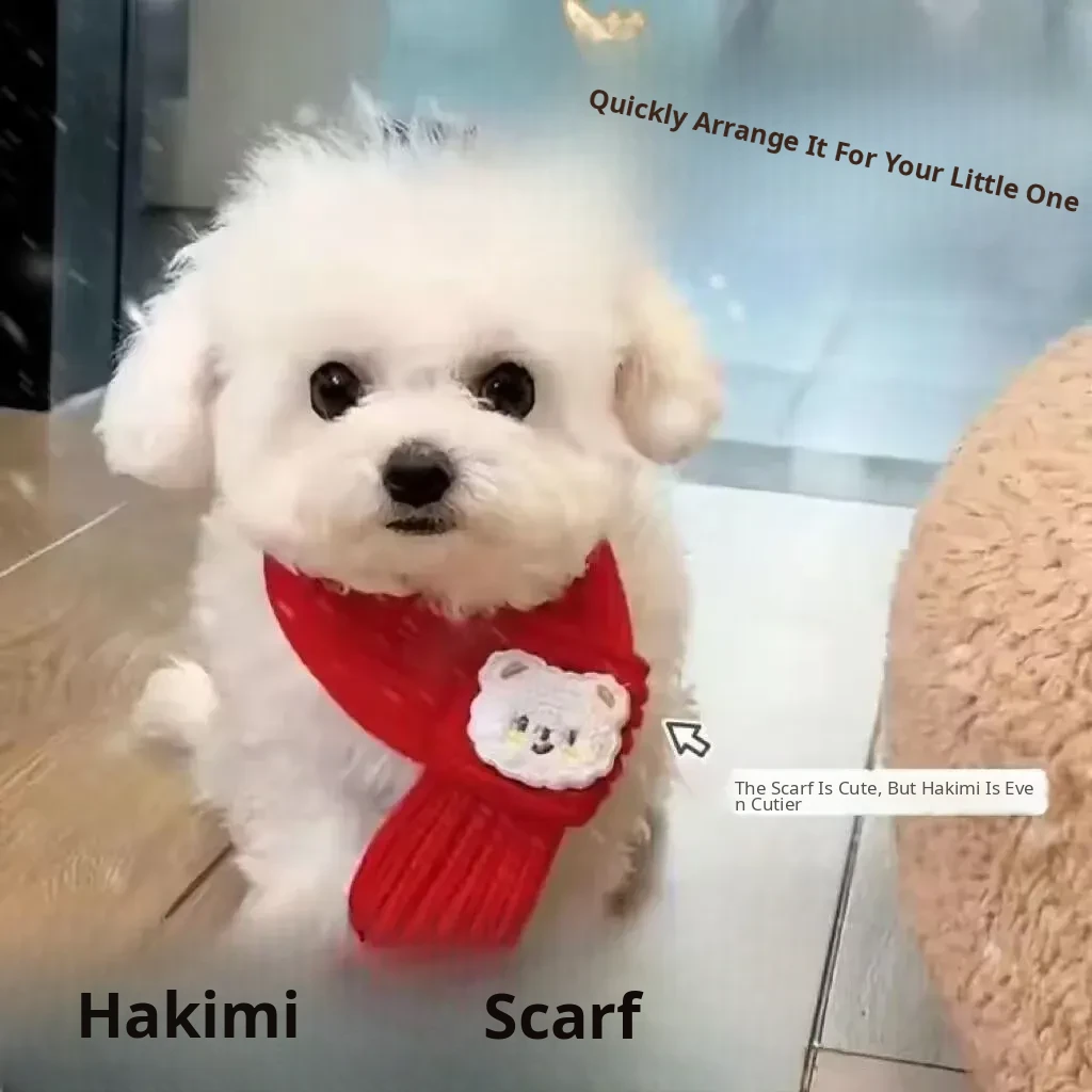 Cute Cat Scarf for Autumn and Winter - Adorable Red New Year Dog Bandana, Stylish Knit Accessory for Pets